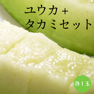 (常温)「特別栽培」鰺ヶ沢産 特秀品 完熟メロンWセット2玉入 ユウカ+タカミ 各1玉(約3kg)※7月末〜8月中旬発送