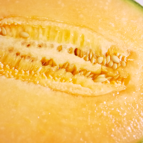 緑皮にマスクメロンのように太目の網目が入る赤肉系のメロン。皮肌のネットが綺麗に出てマスクメロンに近い見た目のメロン。みずみずしさと、とろける食感は今回ご紹介の中ではナンバーワン。種が小さいのと皮が薄いので食べる部分が多いのでたっぷり愉しめますよ〜メロンらしいメロンと言えます。糖度は15〜16度で安定していて、夕張メロンよりも糖度的に高く、赤肉の独特の風合いが感じられ、赤肉好きにはぴったりのメロンと言えます。日持ちも比較的良く追熟期間は5日程見て頂けたらと思います。